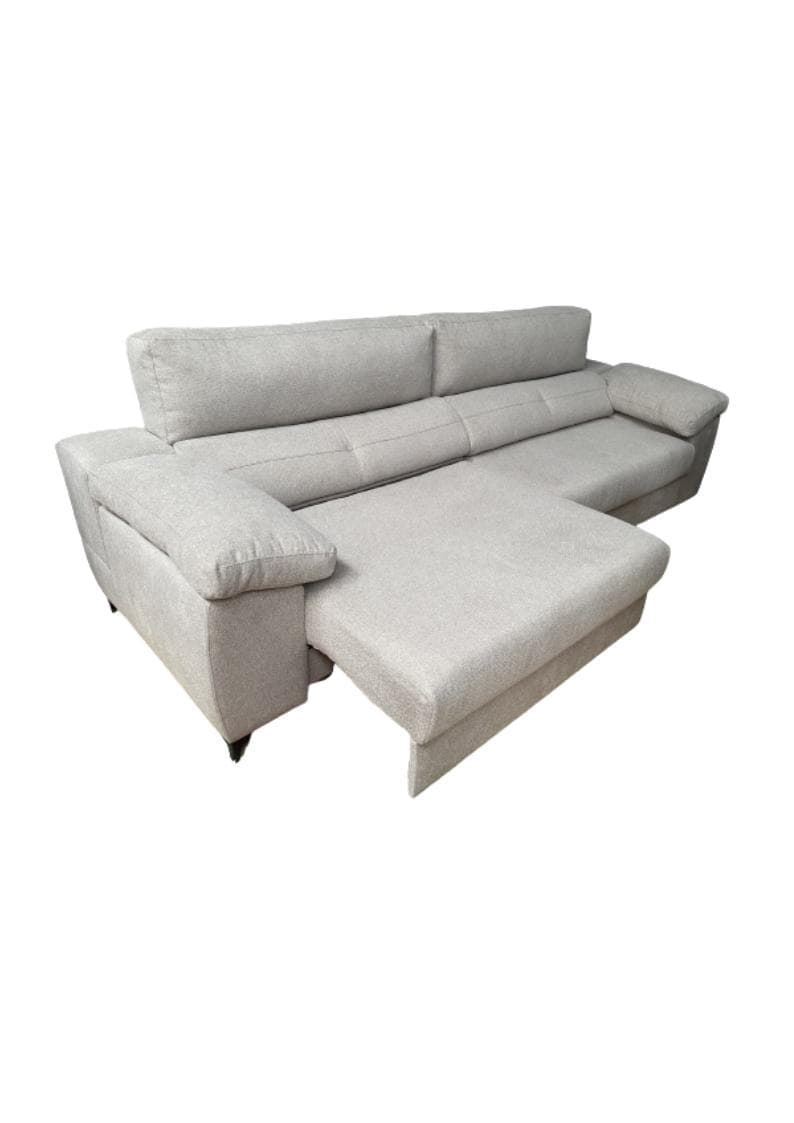 Con 2 amplios asientos extensibles, con apoyo oculto al suelo, con lo que puede hacer función chaiselongue todo el sofá, o solo una mitad. También hace función de cama al extender los 2 asientos, ya que queda una superficie para dormir de 100 x240.